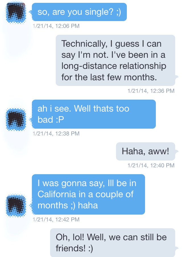 So, at this point, I realize that this guy isn’t taking no for an answer. I’m naturally a nice person, I hate being rude, and was trying to deflect his “compliments” and advances without being cruel. But he wasn’t taking the hint. Since I didn’t really know him, or have an established rapport with him on Twitter in more public channels, I realized I didn’t have to deal with him, so I blocked him. He didn’t need to be allowed an explanation.